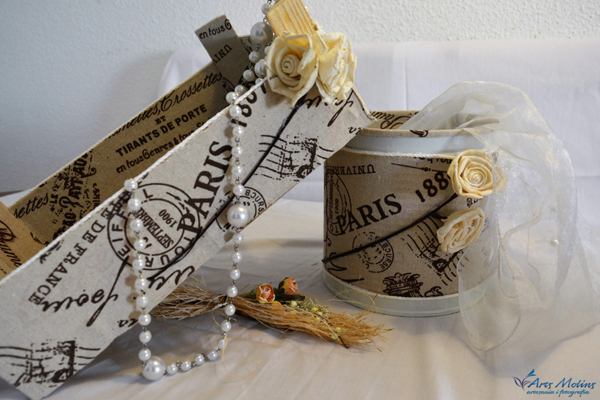 Adornem i reciclem decorant caixes de fusta, cartró… i en fem de noves reciclant varietat de materials.